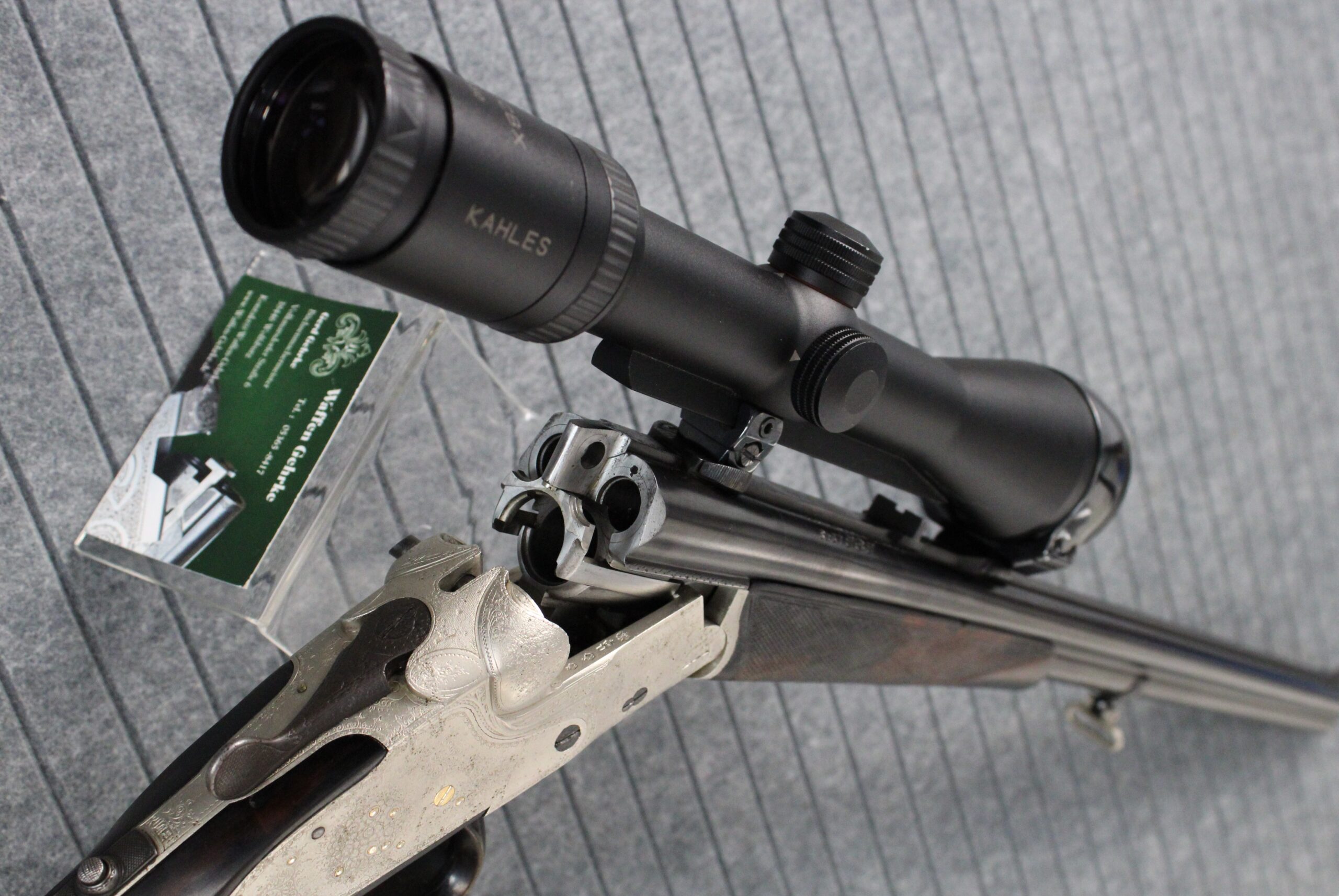 Montiert ist über Suhlereinhakmontage ein Kahles Helia CBX 2,5-10X50 Leuchtabsehen 4 und Ein Docter Sight Rotpunktvisier.