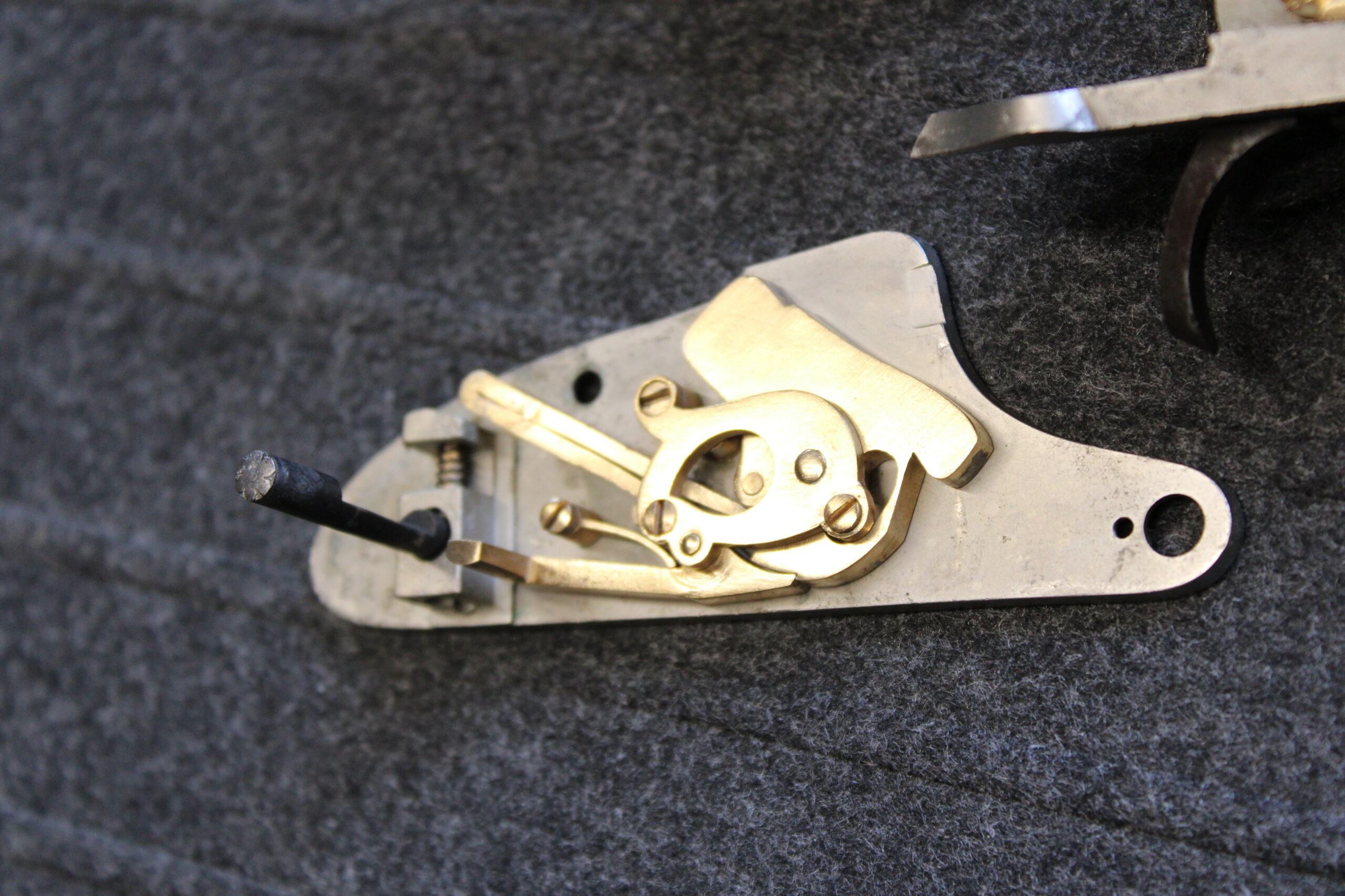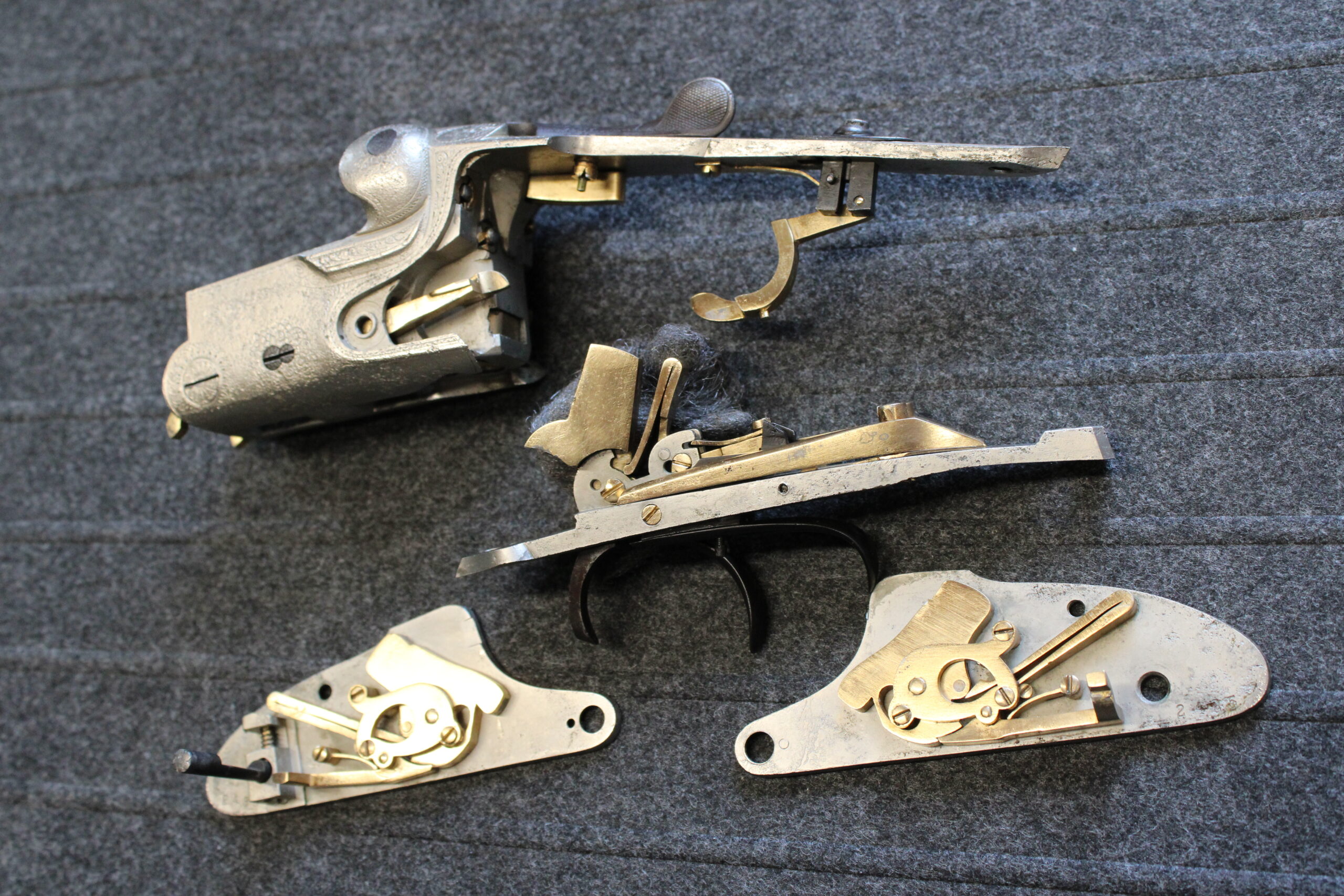 Innenliegende Teile wie Schlagstücke, Studel, Federn, Schrauben etc. wurden goldfarben Titannitriert.