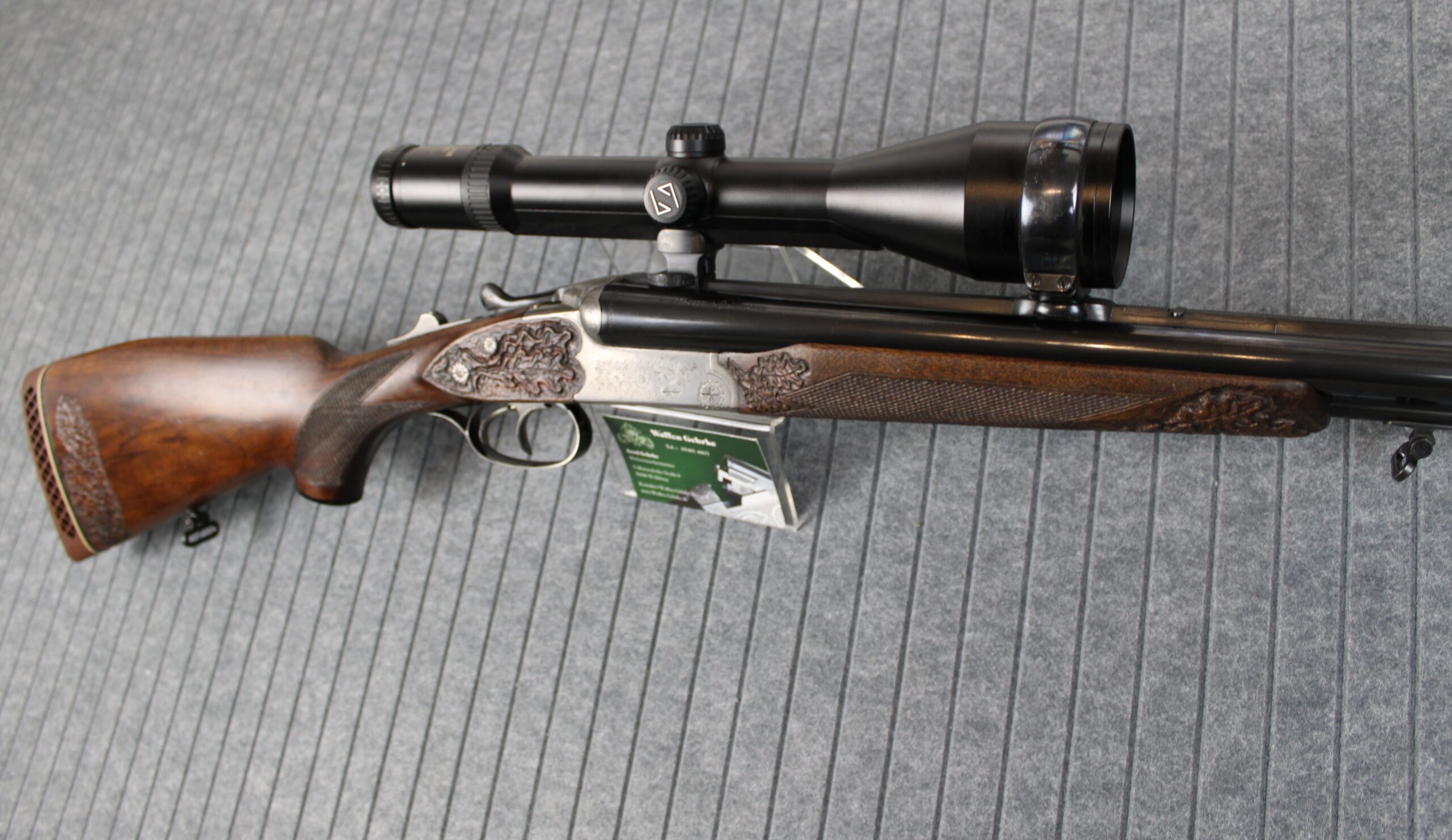 Das Zeiss Diavari VM 3-12X56 T* ist in sehr gutem Zustand und über eine Suhlereinhakmontage montiert.